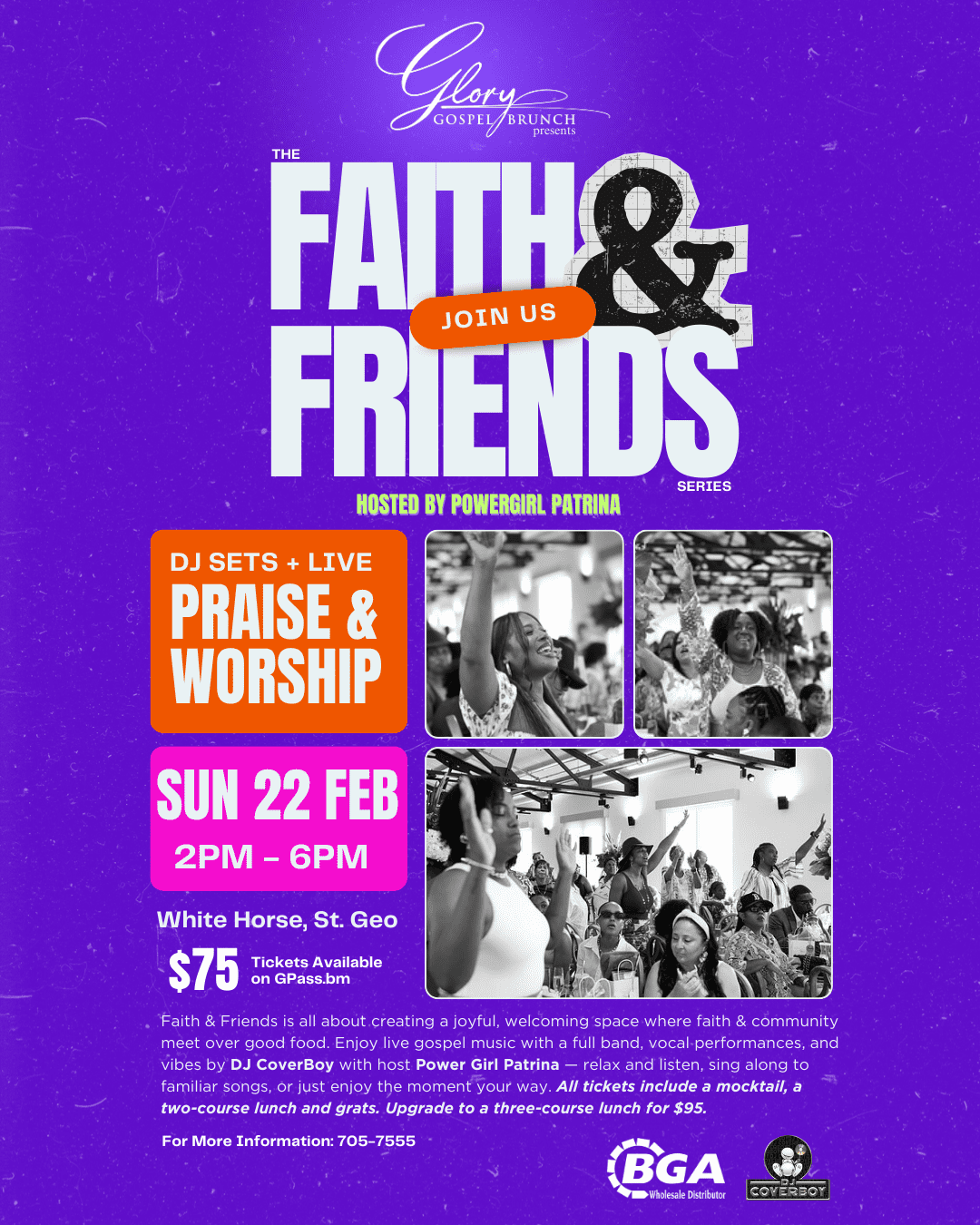 Enjoy live gospel music with a full band and vocal performances, alongside DJ vibes by DJ CoverBoy, keeping the atmosphere flowing throughout the day. Hosted by Patrina 'Power Girl' O'Connor, the experience invites you to relax and listen, sing along to familiar gospel songs, or simply enjoy the moment your way.
